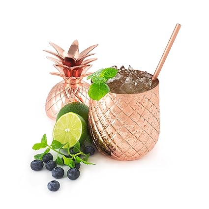 Solid Copper Pineapple Tumbler / Mug with Copper Straw- Available in 3 Sizes (12oz,18oz,24oz)- Handcrafted Drinking Mugs Unique Christmas/ Anniversary/ Birthday Gift Idea